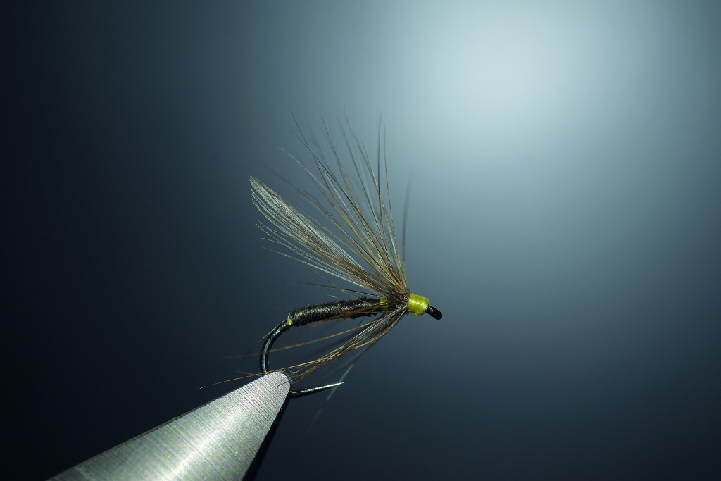 Un montage qui n’est plus très utilisé et qu’on redécouvre ici. En lac de montagne, cette mouche donne pourtant de très bons résultats. Le Mirage dub apporte ici un peu de brillance entre les deux collerettes.